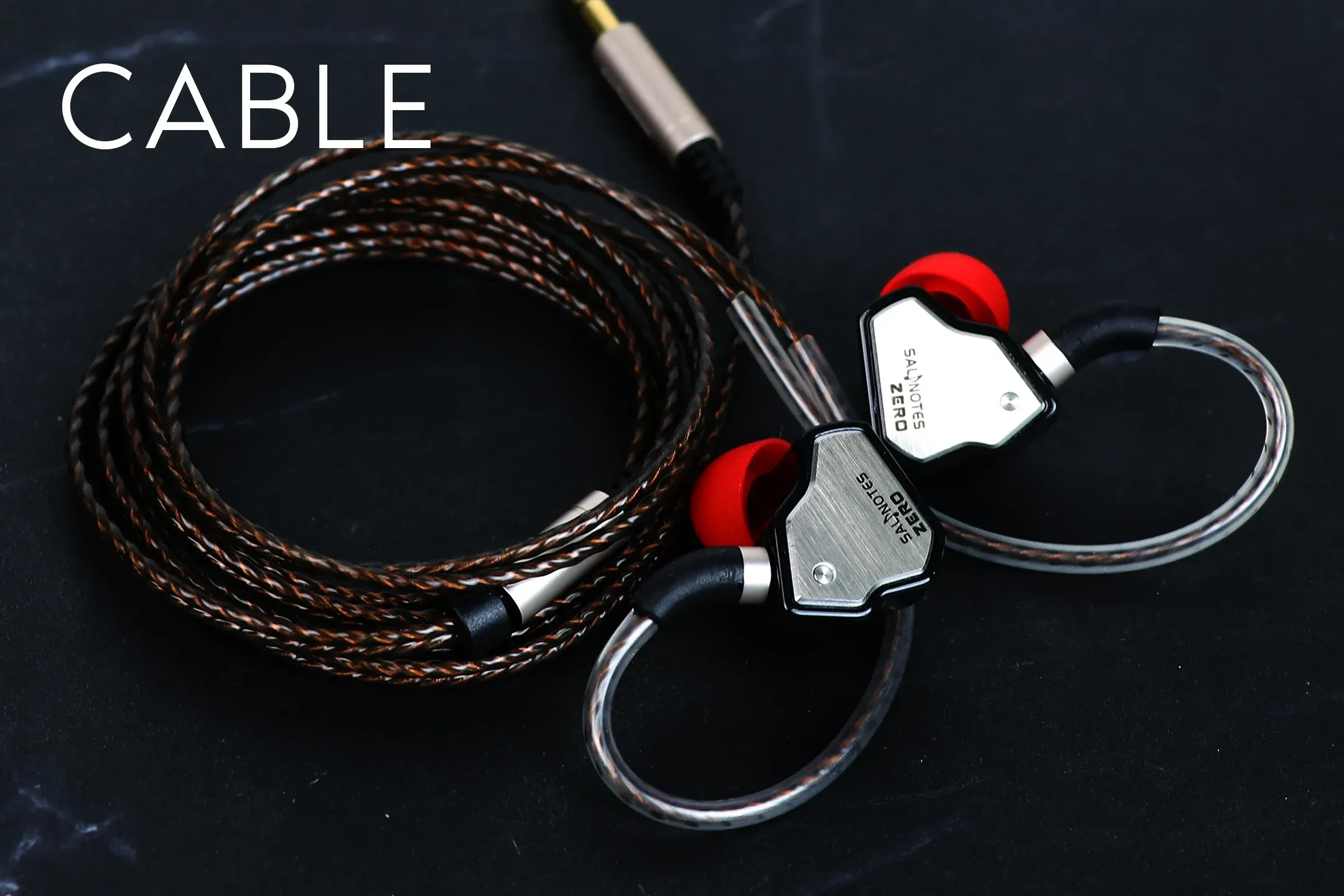 The 7HZ Salnotes Zero features a detachable cable with gold-plated 0.78mm 2-Pin connectors. This design allows for easy cable replacement or upgrading (e.g., to a balanced cable or Bluetooth module). The cable itself is a high-purity Oxygen Free Copper (OFC) structure, engineered to minimize signal loss and ensure high-fidelity transmission.