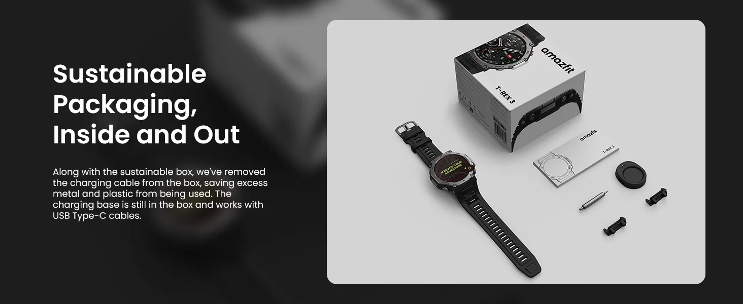 Tested to withstand harsh conditions, the Amazfit T-Rex 3 is shock-resistant, waterproof (10 ATM), and durable for outdoor adventures.