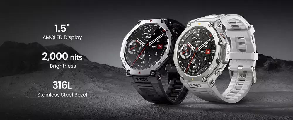 The Amazfit T-Rex 3 Rugged GPS Smart Watch is built for adventurers who demand durability, performance, and style in one device. Designed with military-grade toughness, it is resistant to extreme temperatures, shocks, and water immersion. Featuring a 1.5-inch AMOLED display, ultra-precise GPS, and advanced health tracking, this smartwatch keeps you connected and prepared for any outdoor challenge. Whether you’re hiking, swimming, or training, the Amazfit T-Rex 3 ensures reliable performance in every situation.