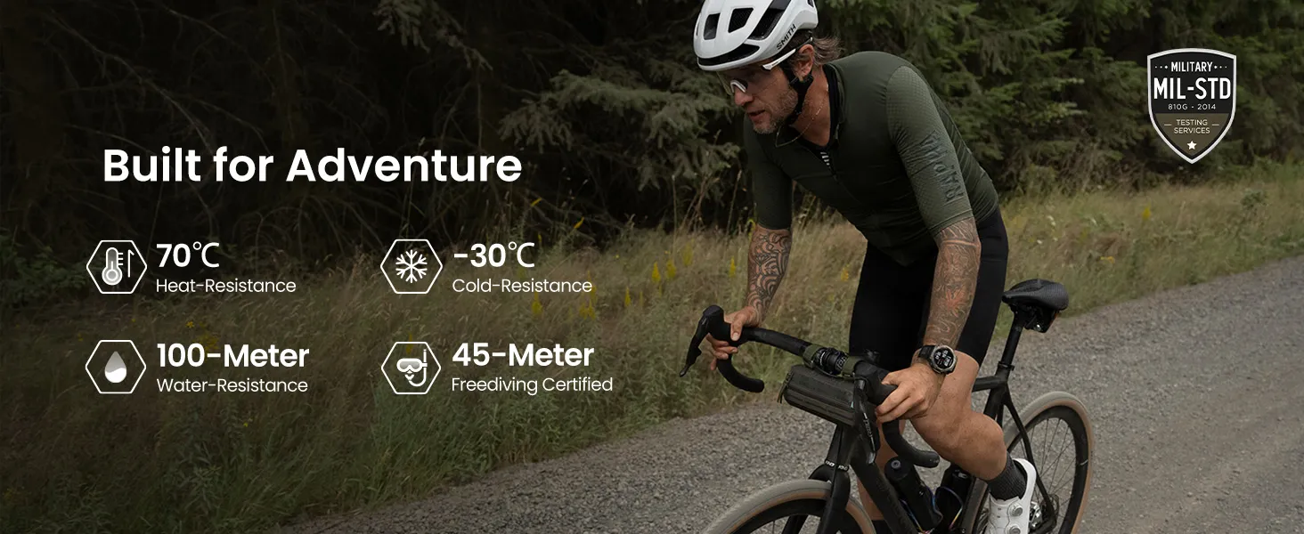 Equipped with dual-band positioning and support for multiple satellite systems, the watch provides accurate location tracking for hiking, running, and cycling.