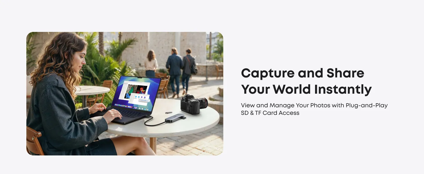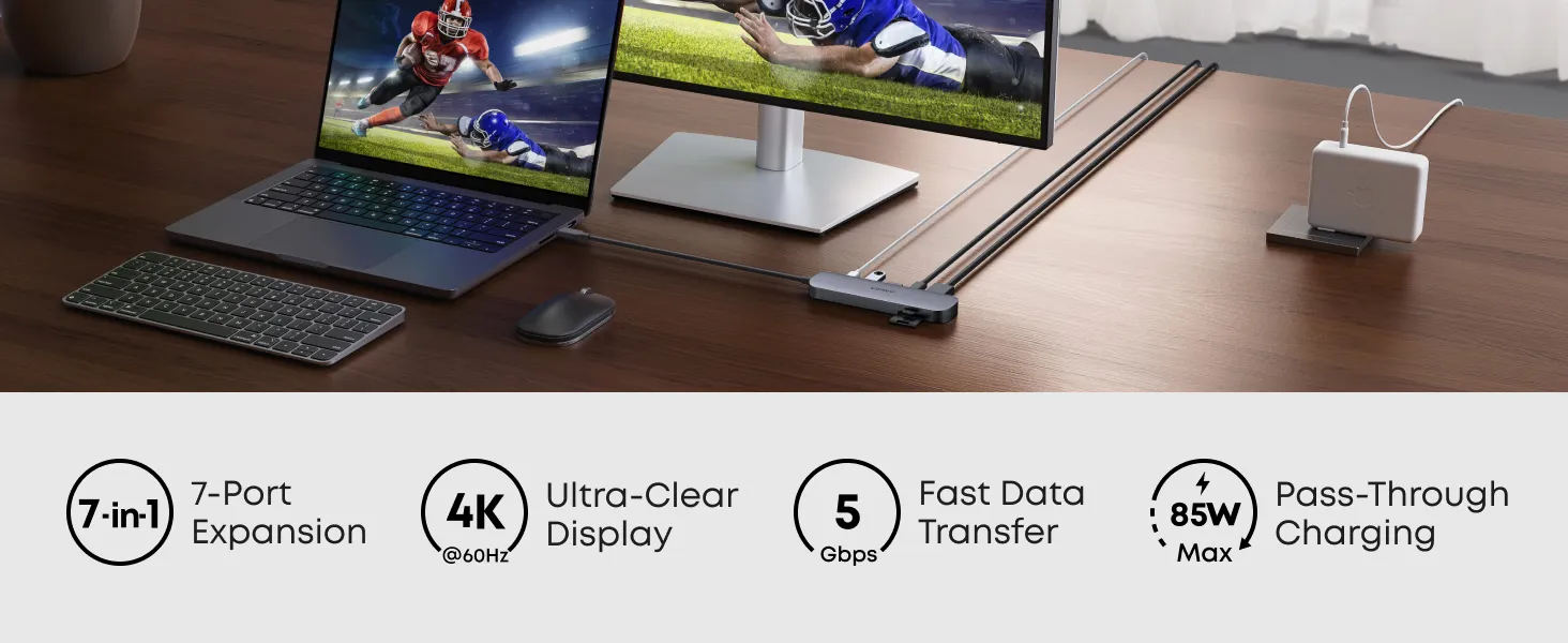 Massive Expansion: Gain access to 7 essential ports, including 4K HDMI, high-speed USB-A data ports, and versatile card readers.