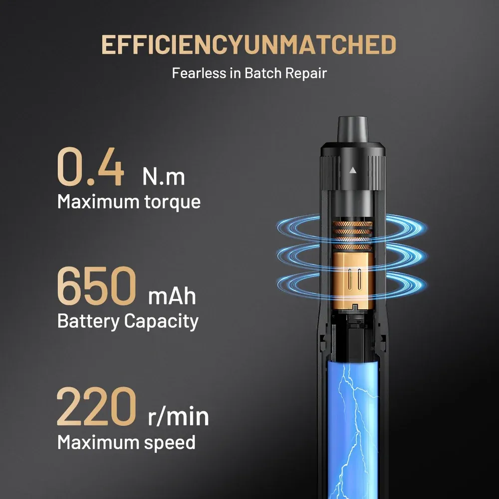 • 3-Speed Adjustable Torque: Features an intelligent gear system with three torque levels 0.4 N m, allowing for safe operation on sensitive components.