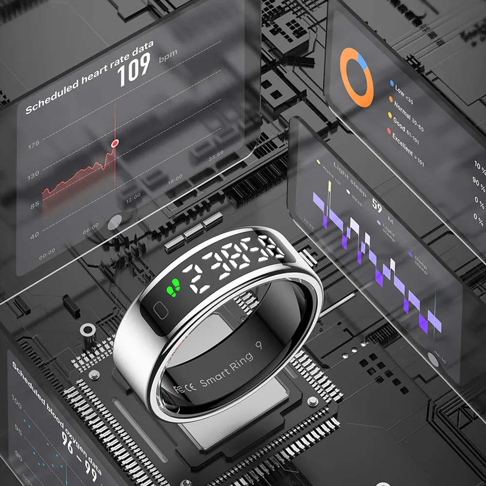 Built-in Touch OLED Display: Effortlessly check the time and health metrics with a simple tap on the ring’s surface, reducing your dependency on smartphones.