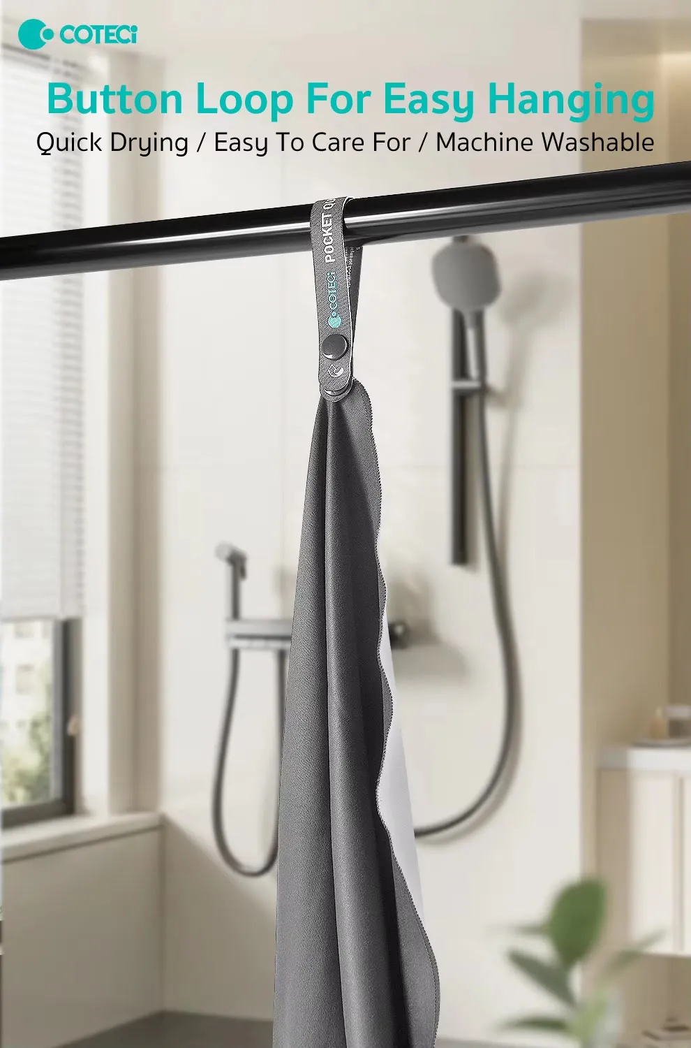Integrated Hanging Loop: Features a convenient snap-loop that allows you to hang it on a tree branch, backpack, or shower hook to air-dry while you’re on the move.