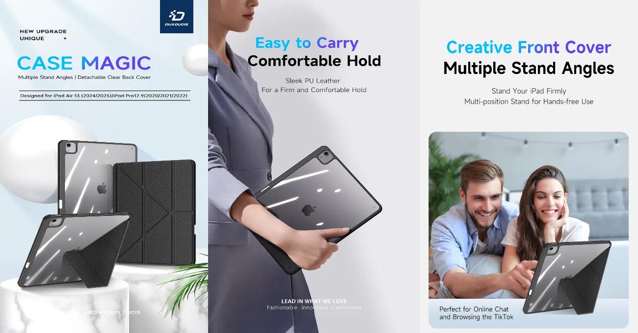 The Magi Series stands out by offering a detachable clear back cover. This allows you to use the lightweight back shell independently for gaming or handheld reading, while the magnetic front flap provides all-around protection when you’re on the move. With its modern aesthetic and high-quality build, it’s one of the most practical cases available for the latest iPad models.