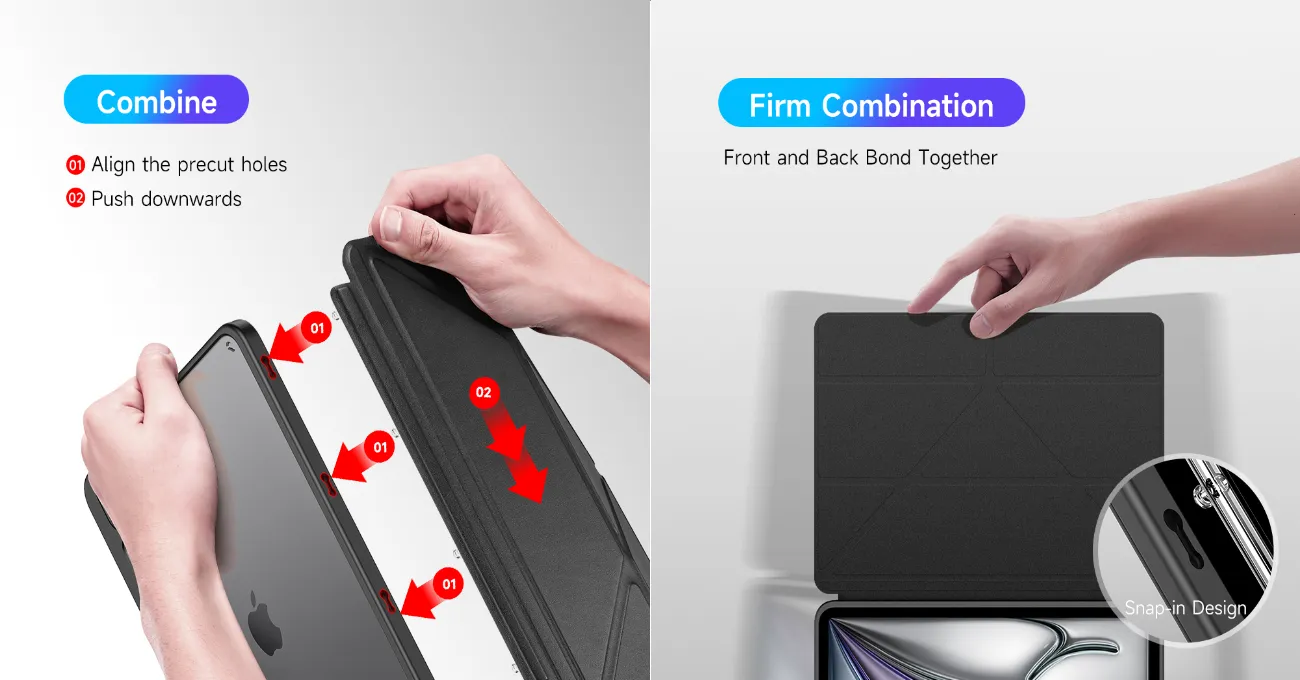 Integrated Pencil Holder: A discreet, secure groove holds your Apple Pencil in place. It supports wireless charging for compatible models, ensuring your stylus is always powered up.