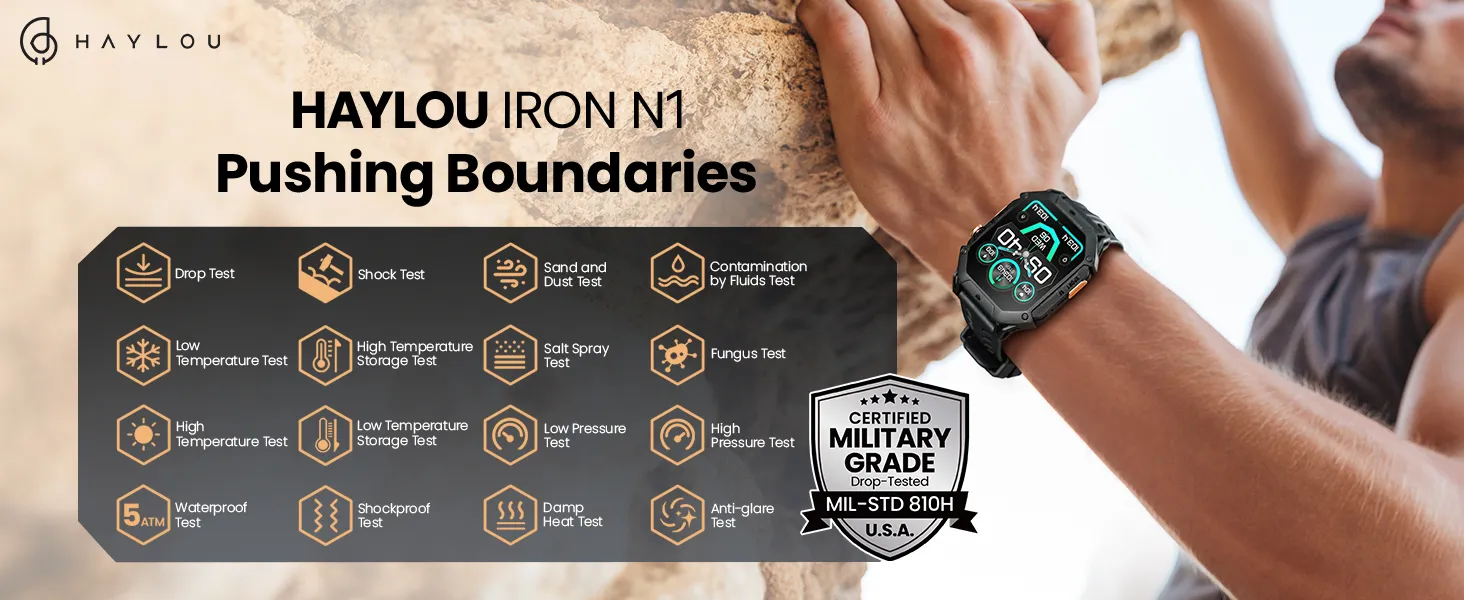 Designed for modern lifestyles, the Haylou IRON N1 supports Bluetooth calling, health monitoring (heart rate, SpO2, sleep), multiple sports modes, and customizable watch faces. With its IP68 water resistance, it’s built to handle sweat, rain, and outdoor challenges. Whether you need a smartwatch for fitness, productivity, or style, the Haylou IRON N1 is a perfect choice.