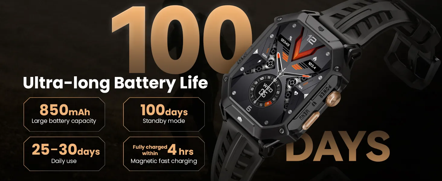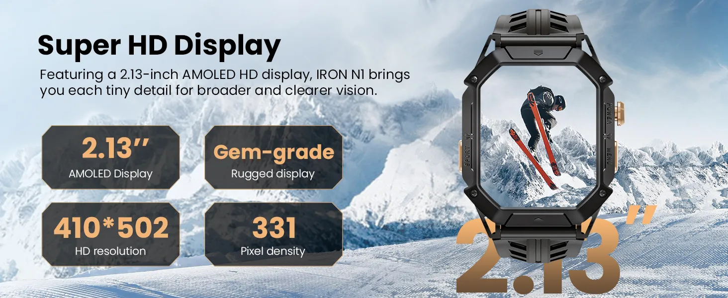 The Haylou IRON N1 Smart Watch combines style, performance, and durability in one powerful wearable. Featuring a 2.13-inch AMOLED display with 410×502 resolution, it delivers crystal-clear visuals for an exceptional viewing experience. Equipped with a massive 850mAh battery, this smartwatch offers up to 25 days of standby time, ensuring uninterrupted usage for fitness tracking, smart notifications, and daily activities.