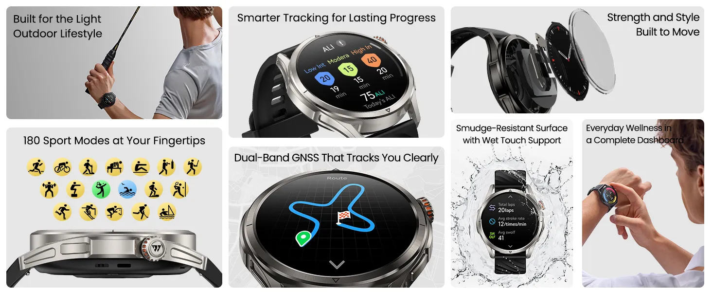Display: 1.43″ AMOLED, 466 × 466 resolution, 1000 nits brightness