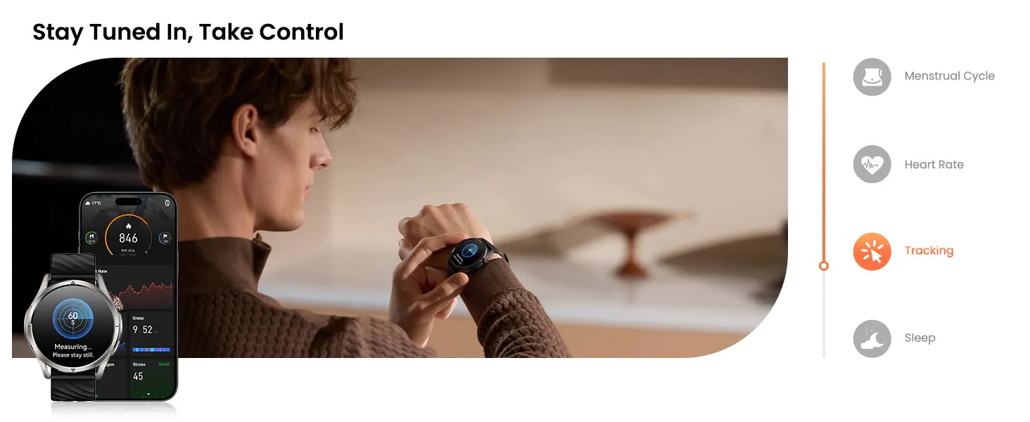 Yes, it includes heart rate, SpO2, sleep tracking, stress monitoring, and 100+ sports modes.