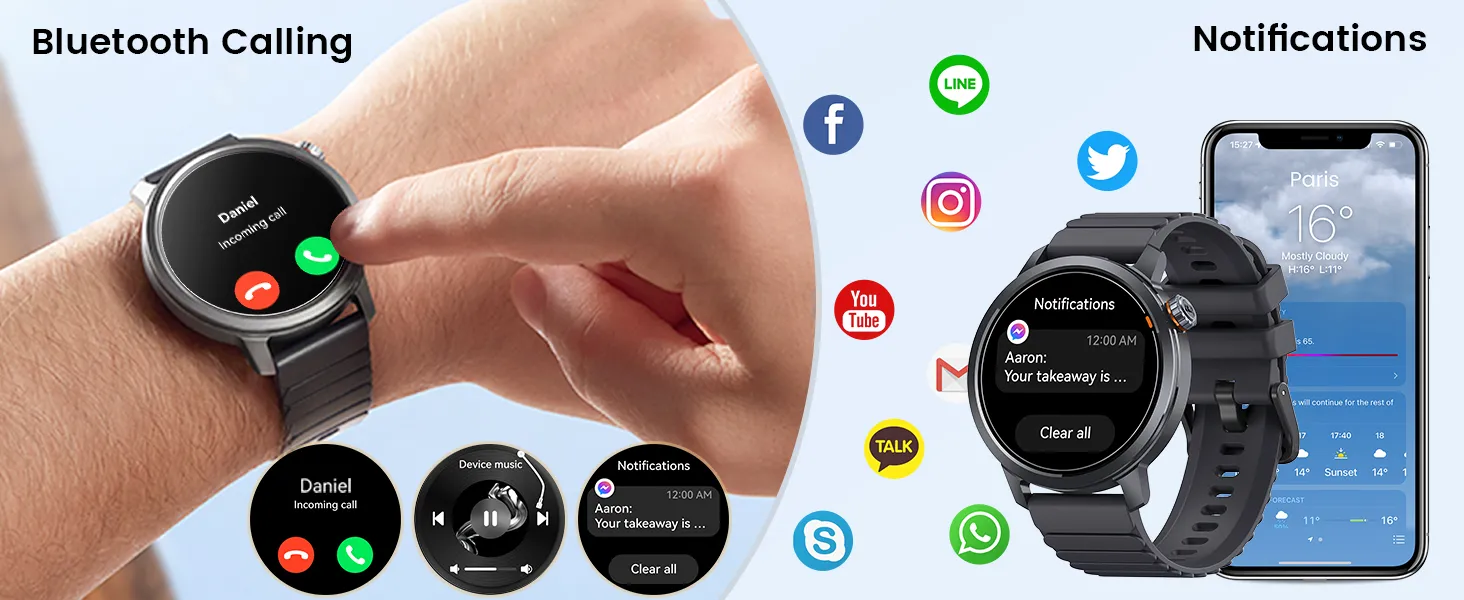Smart Notifications – Get instant alerts for calls, messages, and apps without reaching for your phone.