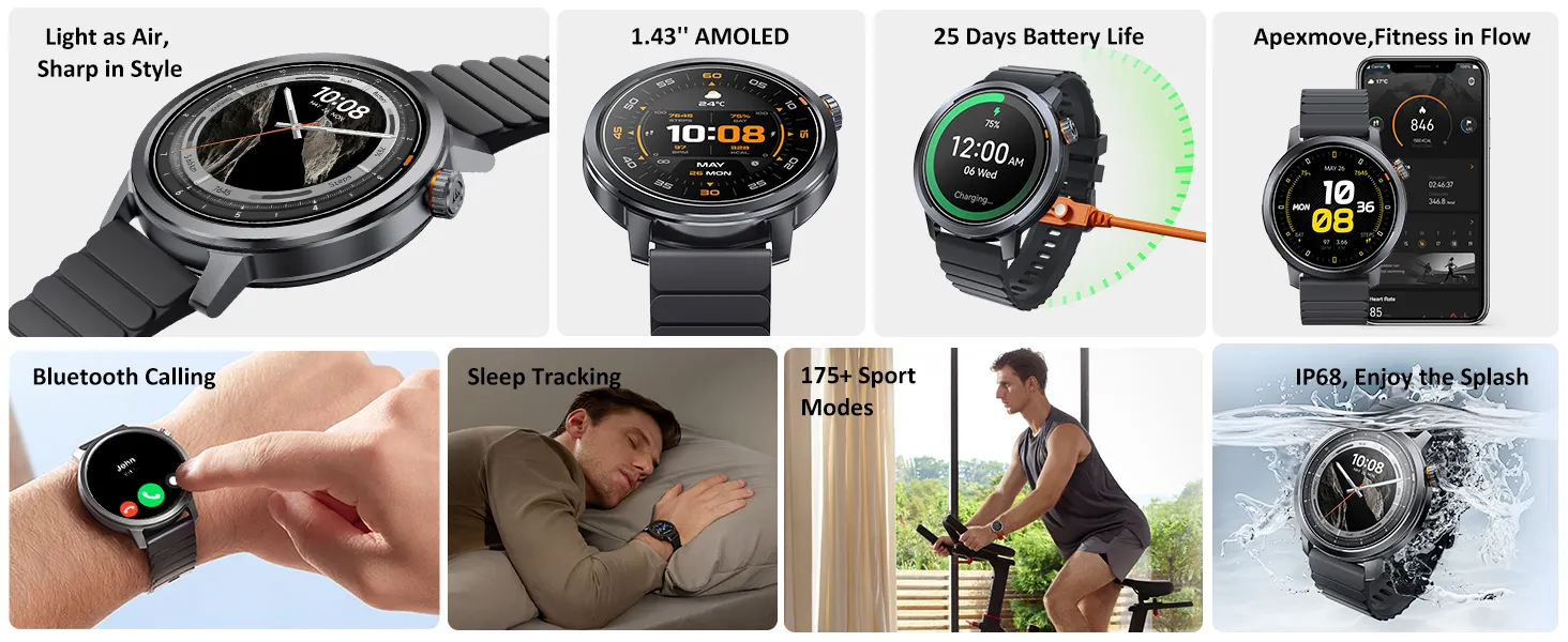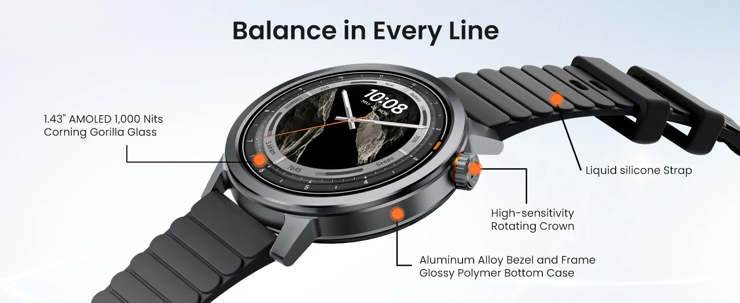 1.43″ AMOLED Display – Enjoy ultra-clear visuals with 1000 nits brightness for easy readability even in sunlight.