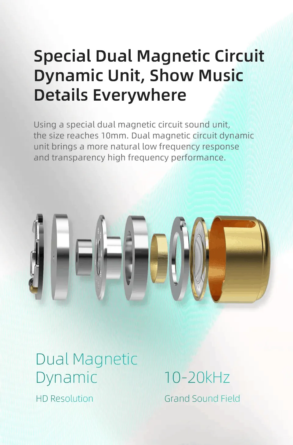 - 10mm Dual Magnetic Circuit Dynamic Unit: Features a powerful magnetic flux system that enhances the low-frequency response, delivering deep, punchy bass and a wide dynamic range.