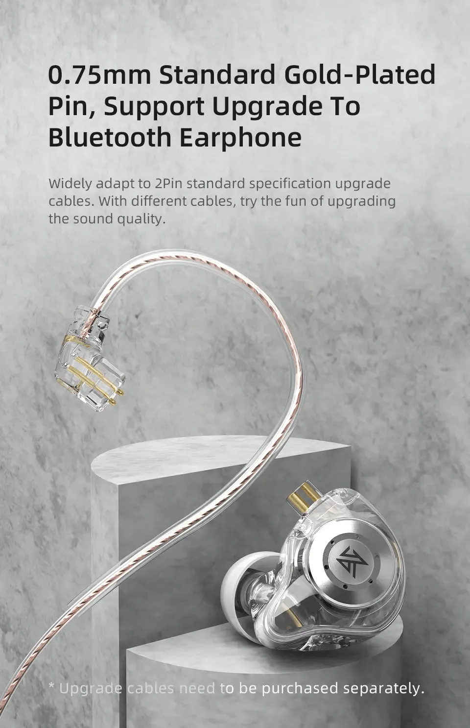 A: Yes, the KZ EDX Pro features a detachable cable with a standard 0.75mm 2-Pin connector. This allows you to easily replace a damaged cable or upgrade to a higher-quality braided cable or a Bluetooth adapter (such as the KZ AZ09) to convert it into a wireless earphone.