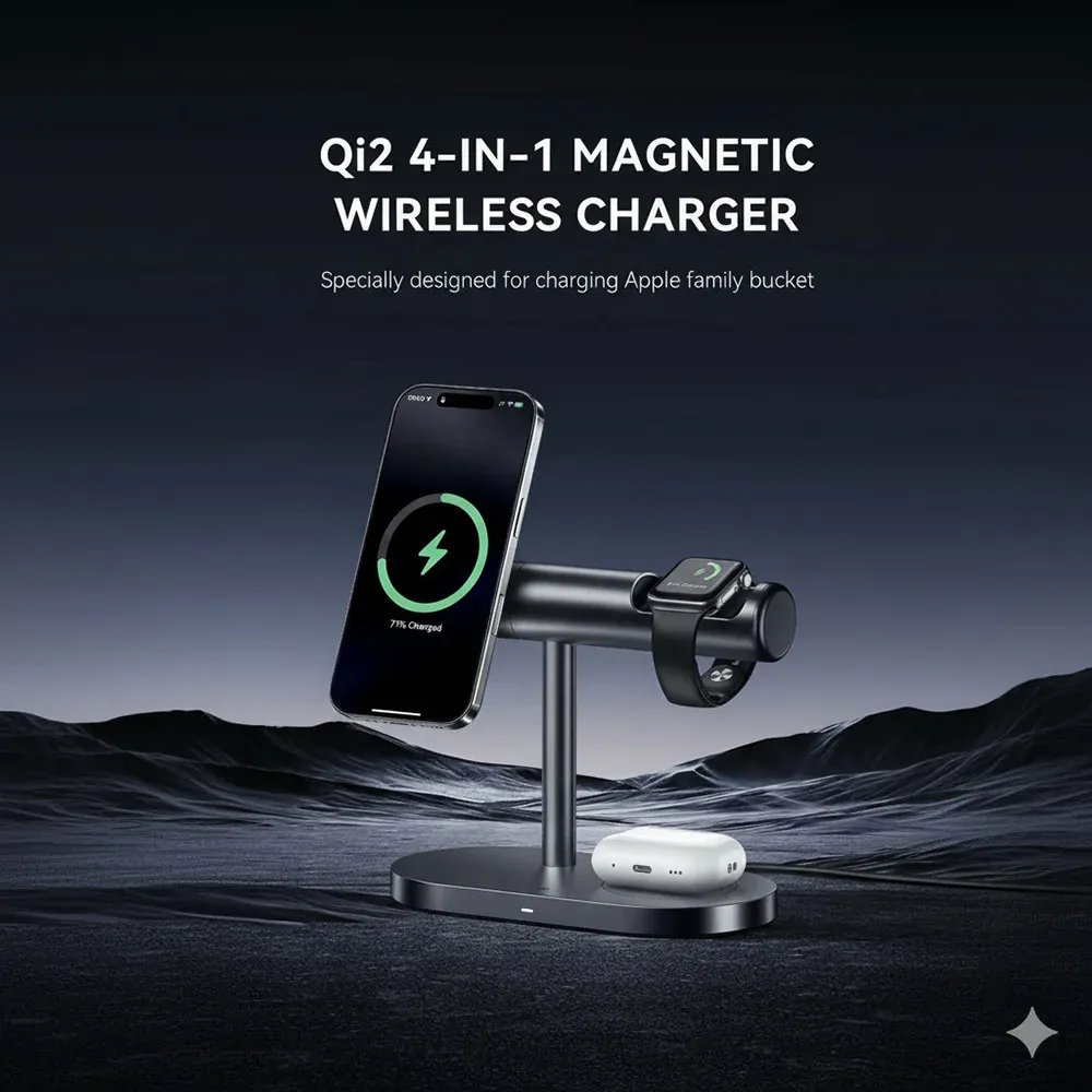 The MAXCO MW16 Qi2 Magnetic Wireless Charger Stand is the perfect blend of high-speed charging and functional design for your Apple ecosystem.1 Featuring certified Qi2 15W fast charging for your iPhone, dedicated ports for your watch and earbuds, and an integrated Ambient Light, the MW16 transforms your desk or nightstand into a premium, clutter-free charging hub.2