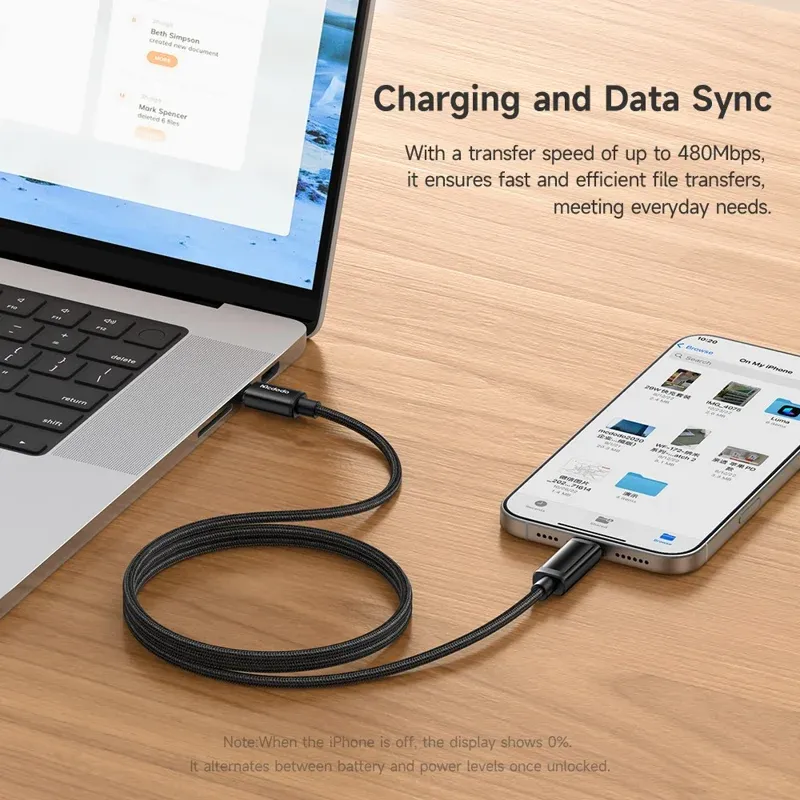 Mcdodo CA-7990 Type-C to Lightning 36W Fast Charging Cable with Dual LED Display 1.2m