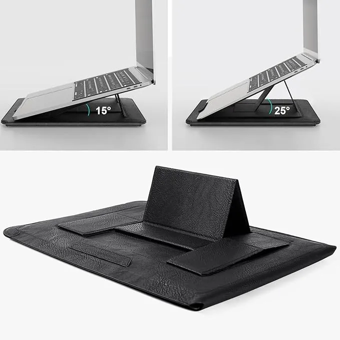 - Ergonomic Laptop Stand: The magnetic foldable design instantly converts the sleeve into a sturdy Laptop Stand with two adjustable angles (18∘ and 25∘). This ergonomic design helps elevate your screen, reducing neck and shoulder strain for comfortable extended use.