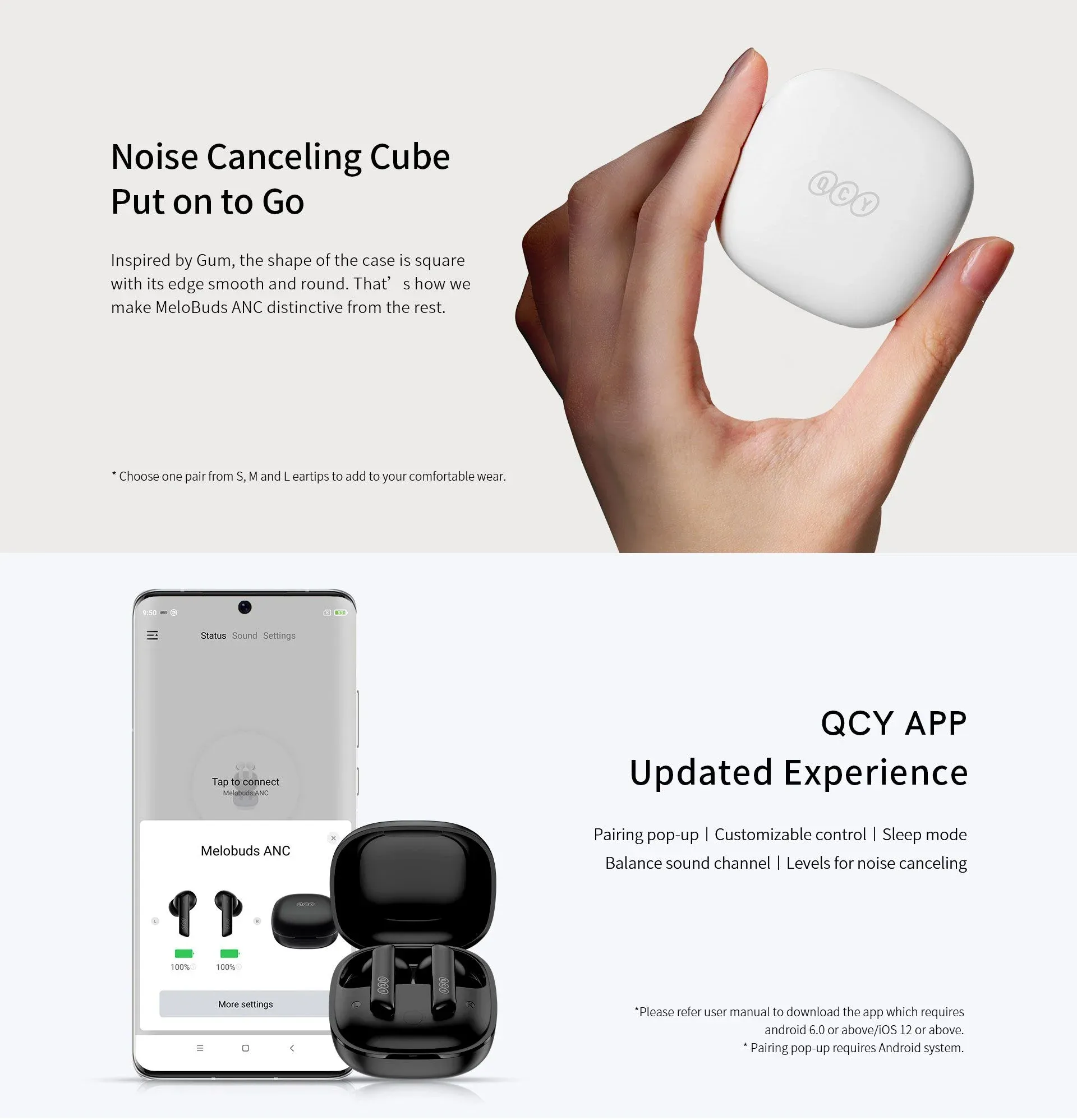 App Support | QCY App (Customizable controls, EQ, ANC levels) |