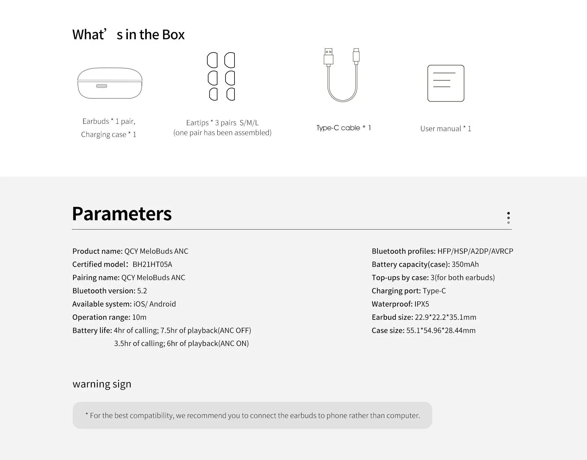 The QCY MeloBuds ANC HT05 is packed with features to elevate your daily audio.2