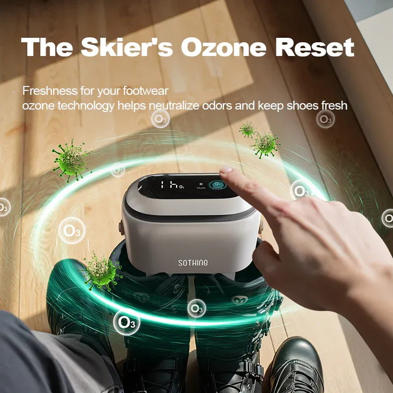 The Sothing Hot Air Shoes Dryer-Ultra is a professional-grade solution for keeping your footwear dry, hygienic, and odor-free. Unlike standard “Zero” models that sit inside the shoe, the Ultra is a high-performance desktop station featuring 95W rapid-heating and dual retractable hoses. Designed for heavy-duty items like ski boots, hiking shoes, and helmets, it uses active hot air circulation and an integrated Ozone Freshness mode to neutralize bacteria and fungi that cause persistent odors. Its foldable, travel-friendly design ensures that even on the wettest mountain trips, you wake up to warm, dry gear.