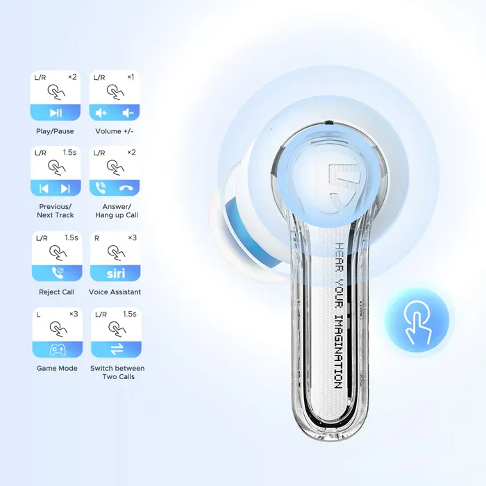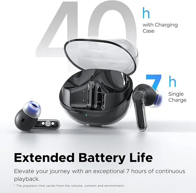 Beyond their looks, the SoundPEATS Clear Earbuds deliver stunning sound quality powered by a large 12mm dynamic driver, offering deep bass and clear, immersive audio. With an incredible 40-hour total playtime and a dedicated Low Latency Game Mode, they are the ideal budget TWS earbuds for music lovers, commuters, and gamers alike. Enjoy crystal-clear conversations thanks to the advanced dual microphone ENC system for flawless calls, all managed through the intuitive Peats Audio App.