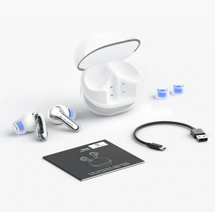 Introducing the SoundPEATS Clear Transparent In-ear Wireless Earbuds, the perfect blend of unique style and exceptional audio performance. These transparent wireless earbuds stand out with their sleek, see-through design, allowing you to appreciate the inner engineering.