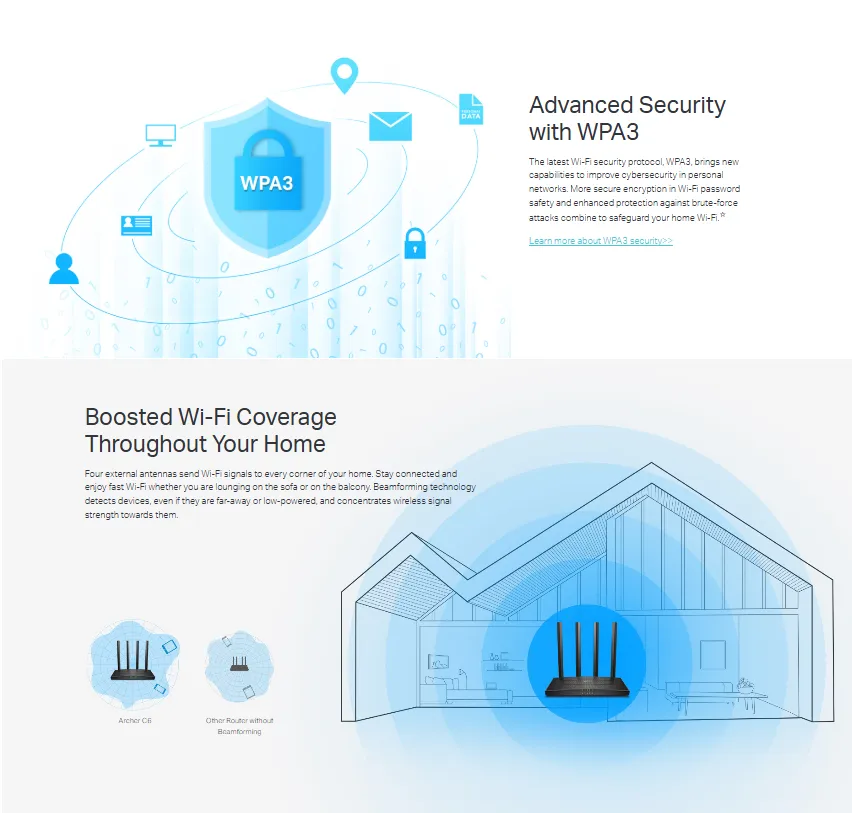 • WPA3 Security: Supports the latest Wi-Fi security protocol, WPA3, for enhanced protection against brute-force attacks and more secure encryption of personal passwords (available in later hardware versions).