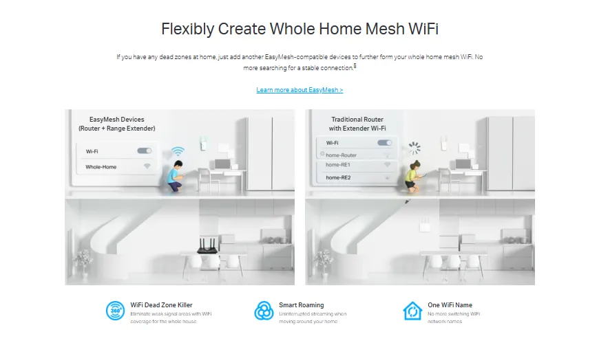 • OneMesh Support (Select Versions): Compatible with TP-Link OneMesh extenders to create a seamless, whole-home mesh Wi-Fi network, eliminating dead zones.