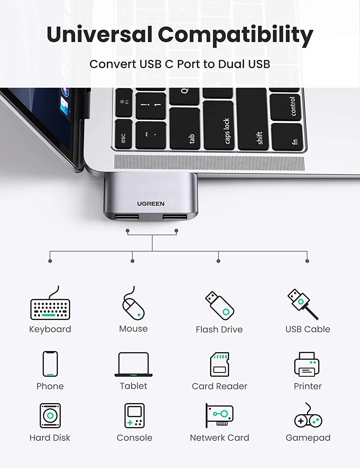Buy Ugreen 10912 Type C to 2USB A 3.0 HUB Adapter CM412 Online At Best Price In Bangladesh At Cheap361.com