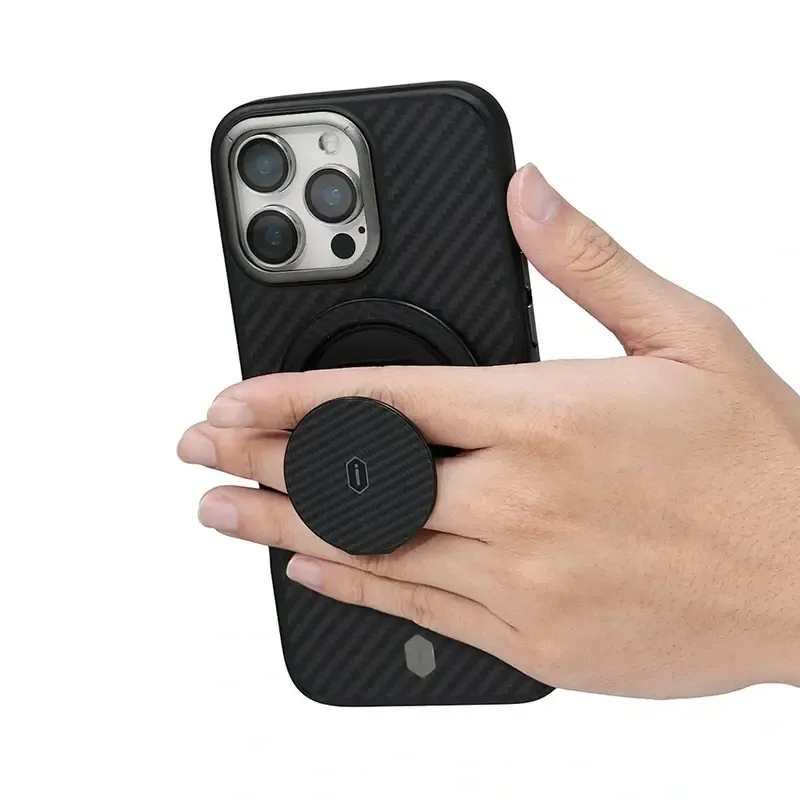 Elevate your smartphone experience with the WiWU Aramid Fiber 360° Rotation Magnetic Ring Holder MW-008. Meticulously engineered from premium, aerospace-grade materials, this ring holder combines a high-tech aesthetic with unparalleled functionality. It’s the ultimate MagSafe accessory for a secure grip, a versatile kickstand, and a sophisticated style, all in an ultra-slim profile.1