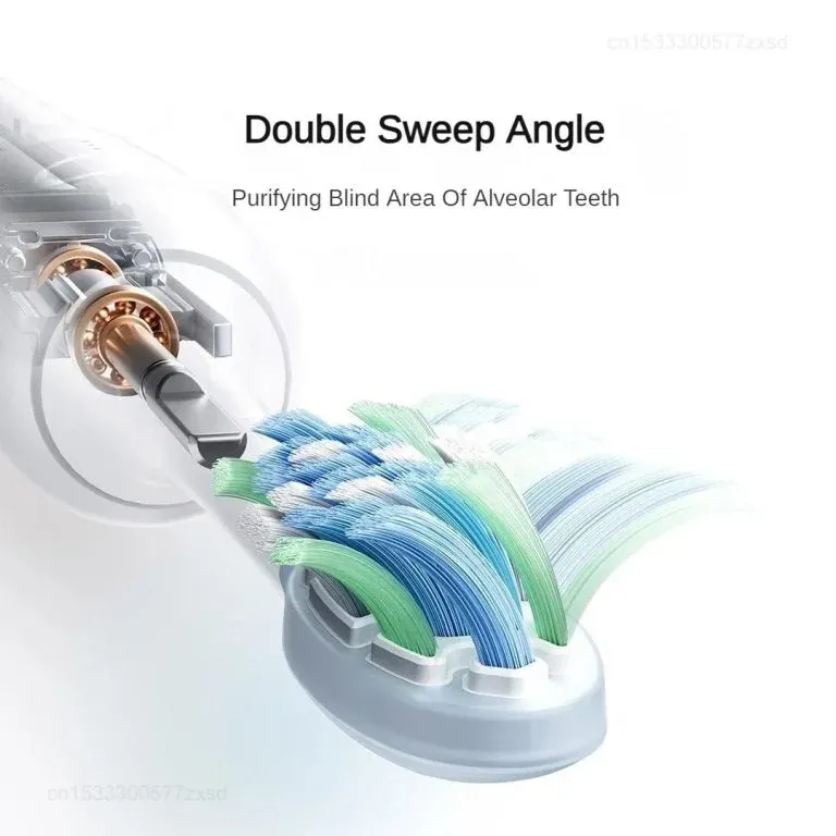 - Double Oscillation Angle: The powerful sonic motor, equipped with sweeping vibration, drives the brush head to achieve a double oscillation angle in Deep mode.10 This innovative motion is highly effective at reaching and cleaning the “blind spots” around molars and in between teeth.11